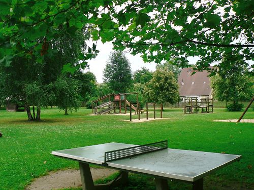 Eine weiträumige Außenanlage unter Linden bietet Platz zu Erholung, Spiel und Spaß.